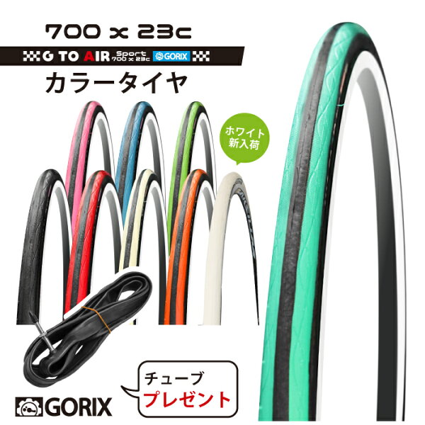 ( チューブ1本プレゼント ) GORIX ゴリックス | タイヤ チューブ セット 自転車 カラータイヤ カラー カラフル 700 23c 仏式 フレンチバルブ ロードバイク 交換 クリンチャー自転車タイヤ クロスバイク Gtoair 700×23c チューブを1点同梱されたお得なセット! 自転車 タイヤ 700×23cでロードバイクやクロスバイクに最適。