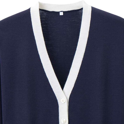 商品詳細 おしゃれな印象の襟元バイカラー、きれいな11色が自慢の日本製カーディガン。