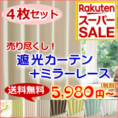 ミラーレース▼ 無敵の4枚セット!! 遮光2枚組+ミラーレース 売り尽くしでお買い得!なんと4枚で5,980円〜! さらに嬉しい『送料無料♪